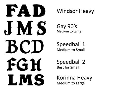 We offer five basic fonts for this price or you may choose your own (sometimes an extra design charge)