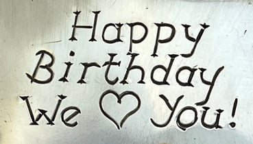 Other options: You take or send your piece out to a machine engraver. Turn-around time including shipping is usually 3-4 weeks, depending on the season (they get busier near holidays). The charge is usually around $35-$45.